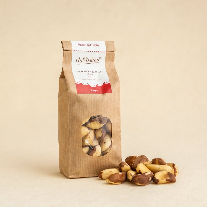 Nucile braziliene sunt semintele nucului Brazilian, unul dintre cei mai mari arbori din Amazon. Se remarca de celelalte nuci prin continut incredibil de mare de seleniu, fiind singura sursa naturala cu un continut atat de ridicat de seleniu. Nucile noastre braziliene sunt crude, delicioase, fragede, crocante, 100% naturale .
